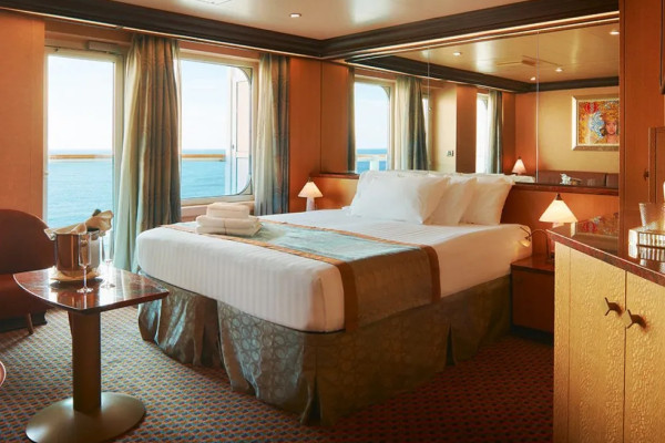 Two twin beds that convert to a Royal King bed.Total Approx. Size:Stateroom: 179 sq. ft.Balcony: N/A